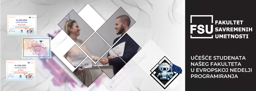 Studenti prve godine Fakulteta savremenih umetnosti – Ana Pantić, Milica Mićanović i Mihailo Stojšin – učestvovali su u Evropskoj nedelji programiranja 2024. Pod mentorstvom profesorke Brankice Todorović na predmetu Statistika, studenti su realizovali interaktivnu aktivnost pod nazivom „Online tools: Progress towards the SDGs”. Kroz ovu aktivnost koristili su interaktivni okvir Agende 2030 za generisanje izveštaja o napretku u ostvarivanju Ciljeva održivog razvoja, koji imaju informativne, edukativne i analitičke vrednosti.