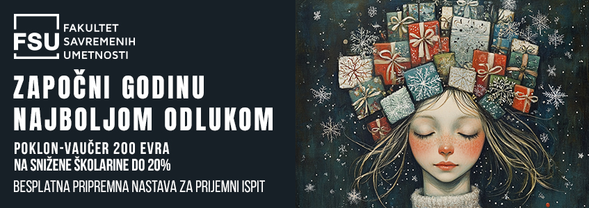 Nova godina donosi nove prilike da započnete svoje obrazovno putovanje na najbolji način! 🎉 Fakultet savremenih umetnosti (FSU) pripremio je specijalnu prazničnu ponudu za sve buduće studente koji žele da razvijaju svoj talenat i grade uspešnu karijeru u kreativnim industrijama.