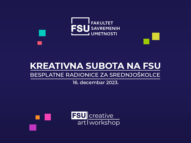 U subotu, 16. decembra, na Fakultetu savremenih umetnosti održane su art-radionice. Svi srednjoškolci zaljubljeni u umetnost imali su priliku da nauče mnogo korisnih stvari i vide ceo proces stvaranja umetničkih dela. FSU Creative Art Workshops sastojao se od radionica iz glume, slikarstva i multimedijalne produkcije. Na ukupno sedam radionica učenici su uz pomoć predavača stekli uvid u to kako izgledaju umetničke studije i na koje sve načine mogu da razvijaju svoj talenat.